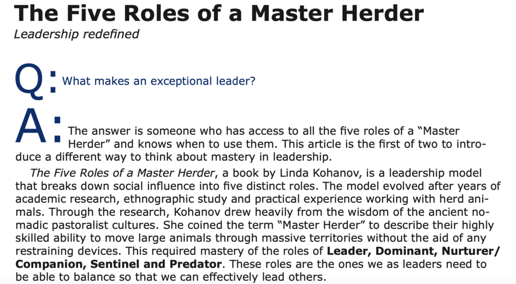 The Five Roles of the Master Herder: Leadership Redefined: Part ONE